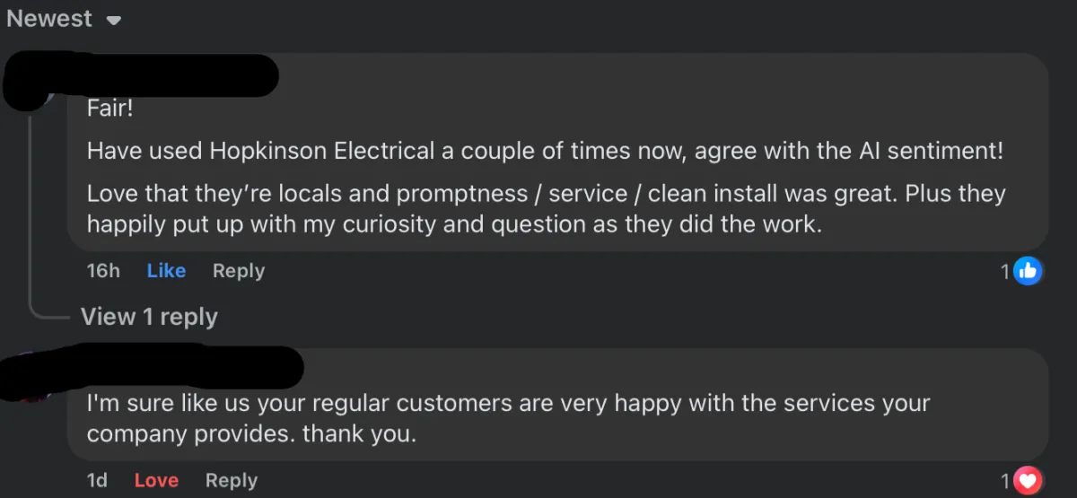 I started Hopkinson Electrical a few years ago with the belief that providing a good service is enough to grow a meaningful business, and that has proven true. We are known for providing a consistently great service, and we hope to continue that with you.